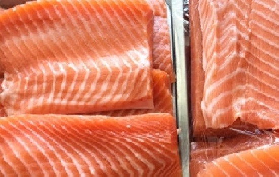 三文鱼的纹理清晰,脂肪线,比虹鳟鱼粗一下,色泽也比较鲜亮。虹鳟鱼方面脂肪纹理薄,且色泽比较深,比较红。